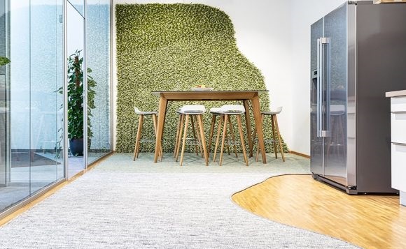 Als Teppichboden, Teppichfliese oder abgepasster Läufer mit Kettelung oder Bordüre ist er eine ideale Grundlage für gesundes Wohnen und Arbeiten.