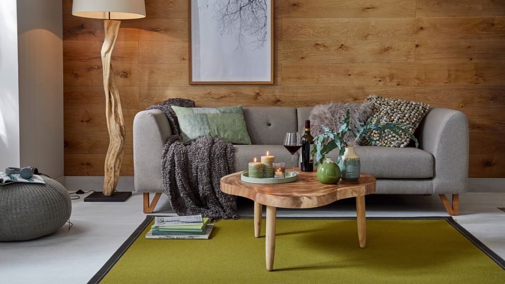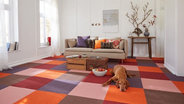 Mit den praktischen Teppichfliesen lässt sich ein Raum je nach Stimmung und Jahreszeit ganz schnell in unterschiedlichen Atmosphären gestalten. Mit passender Wandfarbe, Dekoration und einem neuen Sofabezug entsteht ein komplett neuer Raumeindruck - fertig ist das neue Zuhause!