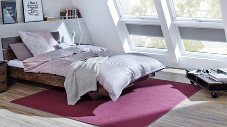 Als Teppichboden, Teppichfliese oder abgepasster Läufer mit Kettelung oder Bordüre ist er eine ideale Grundlage für gesundes Wohnen und Arbeiten.
